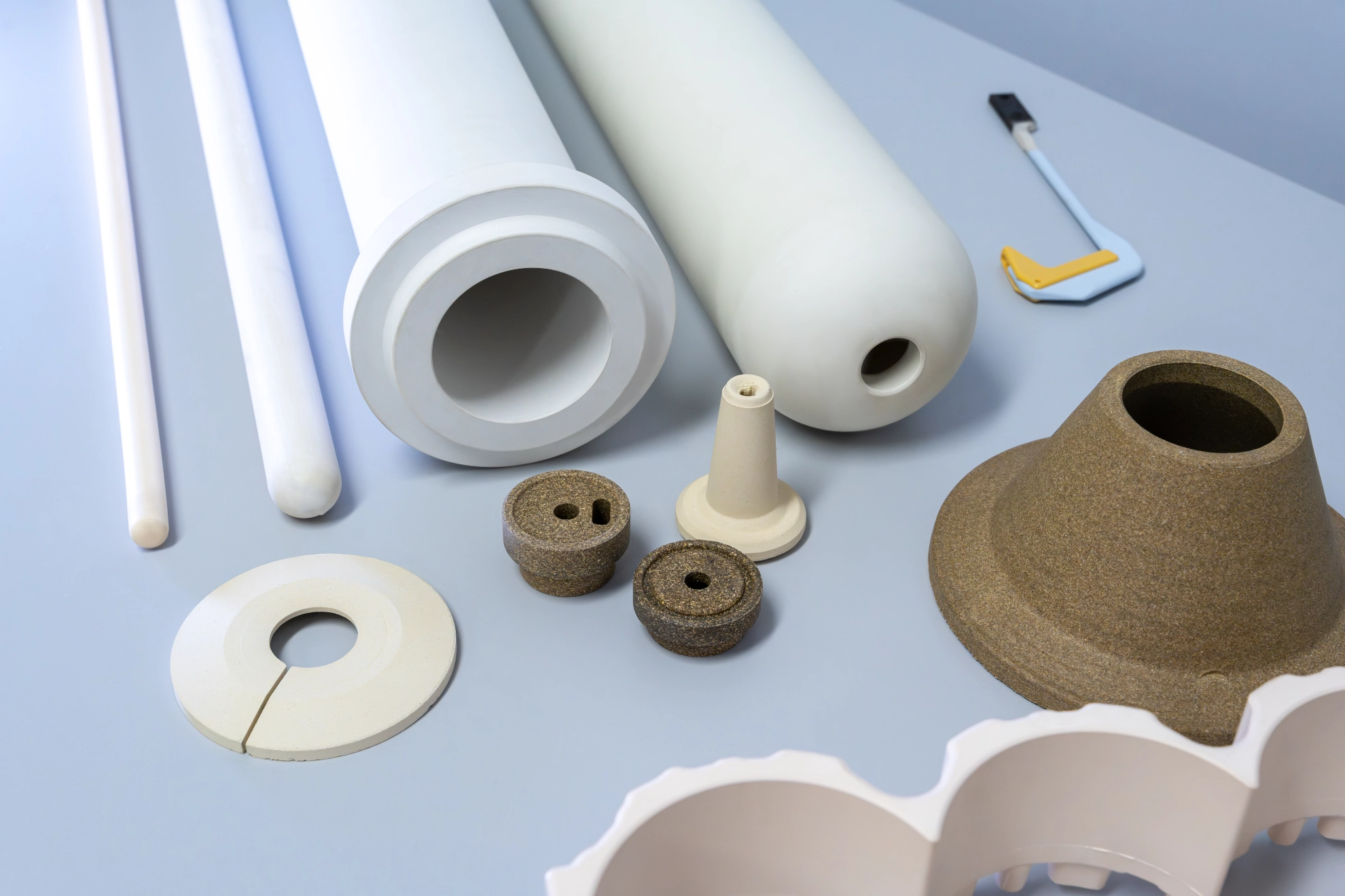 Neben klassischen Heizrohren bieten wir Ihnen auch Bauteile aus Aluminiumtitanat (Al₂TiO₅) und Siliziumnitrid (Si₃N₄) in verschiedensten Formen – von Platten und Trichtern bis hin zu komplexen, dreidimensionalen Geometrien – für maximale Flexibilität in Ihrem Produktionsprozess.